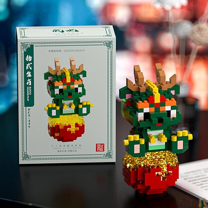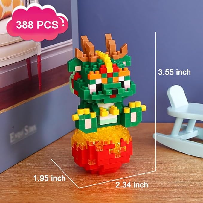 12 Mini Animals Building Blocks Sets Building Block Party Favor for Kids Small Zodiac Animals Pets Horse Dog Monkey Tiger Rabbit Dragon STEM Educational Toys for Boys Girls(Dragon)