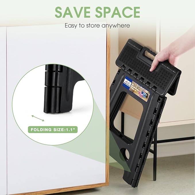 ACKO Folding Step Stool Foldable 17.5 Inch Stools for Adults and Kids,Plastic Stools Tall 400 lbs Capacity,Collapsible Stool for Kitchen, Stepping Foot Stool with Handle,Dot Black,1 PC