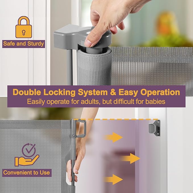 - 42" Extra Tall Retractable Gates: This extra tall baby gate is 42 inches tall and taller than other retractable baby gates to prevent your babies and dogs from jumping or climbing over it.