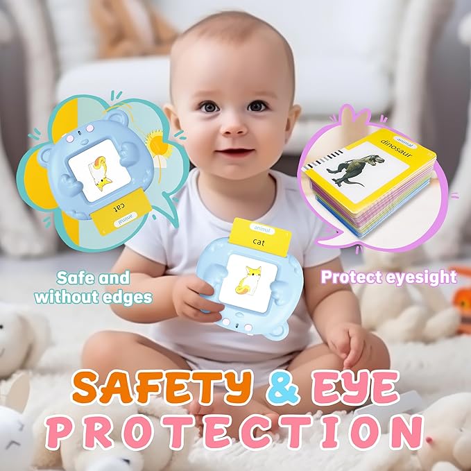 - 【The Perfect Gifts for 2-4 Year Old Boys and Girls】With adorable designs, vibrant flash cards, and entertaining sounds, it is the ideal educational toy gift for occasions like Christmas, Children’s Day, birthdays, and more. The blue educational toy is perfect for boys, while the pink toy is suitable for cute girls. 2 Pack toddler talking flash cards are perfect for families with multiple children! All montessori toys are made of non-polluting materials, ensuring they are non-toxic and safe for children.