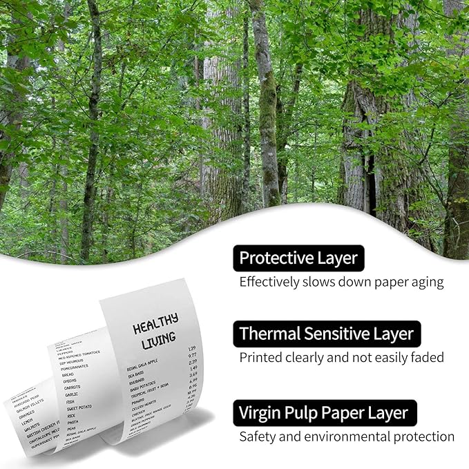 - [Reliable Quality] The image printed by high-quality POS receipt paper is clear, giving customers a good experience!Cash register paper has strict quality control, printing is smooth, and paper jam will not occur.