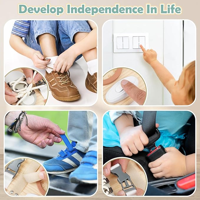 - Great Montessori Toys Gift: Our busy board for toddlers is great. Aesthetic baby toys activity board to develop hand-eye coordination and fine motor skills through sensory play and enhance early development skills. The perfect Montessori toy gift for boys and girls.