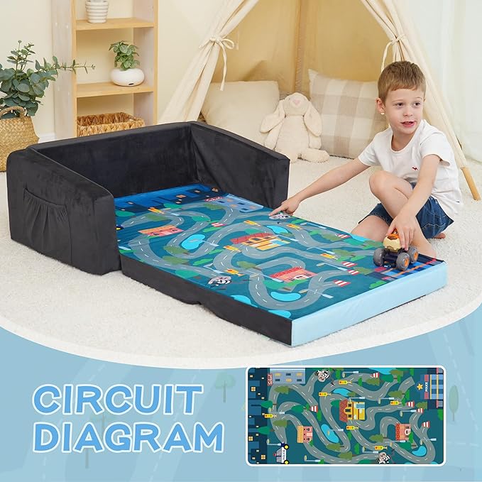 - 2 IN 1 - Perfectly sized sofa bed for children. Flip-open bottom piece 2 in 1 Open childrens sofa bed, gives childrens the option of lying down flat. Give children to read, play, or expended into a long sofa and take a nap to provide a more comfortable place.