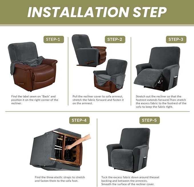 - [Amazing Design]:The surface of the recliner sofa cover is smooth and soft to the touch, with super elasticity, so it can cover your recliner well and create a customized appearance. It can resist pet scratches and bites, as well as cover stains and flaws in daily life.