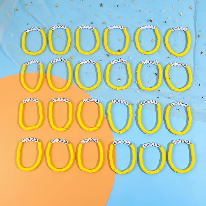 24 Pcs Cheerleader Gifts for Girls Handmade Friendship Bracelets for Teen Girls Stretch Cheer Bracelets Y2k Cheer Stuff Stackable Clay Bead Bracelets Bulk Teens Birthday Christmas Party Favors