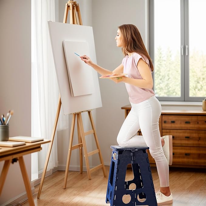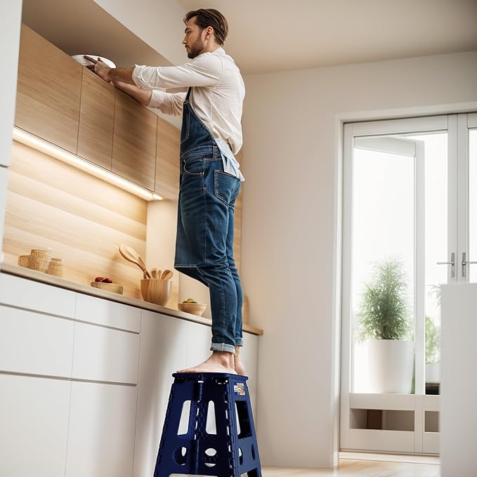 - Safety-Focused Design: Our lightweight folding step stool equipped with a non-slip surface, movable handle and the bottom corners are upgraded to black non-slip dot textured rubber straps to prevent slips and finger traps, improving a secure user experience.