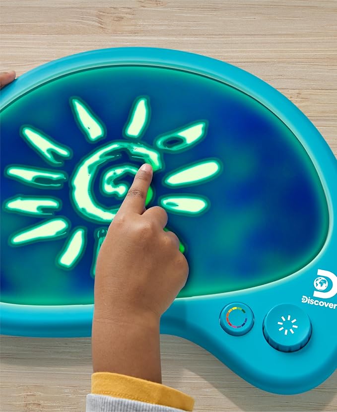 - ✔ LIGHT UP YOUR CREATIVITY: Explore 12 vibrant colors of glowing light to create dynamic, luminous art with the touch of a finger on a mess-free, squishy gel art surface.