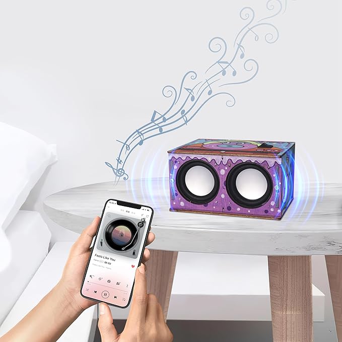 - 【Create your own Bluetooth speaker with unique patterns and colors】Rich decorative elements, through our exclusive decorative accessories, Includes 12 colors of paint pens and music stickers to apply your own colors and patterns on the speakers.With endless customization options, you can create a speaker that's truly unique to you.