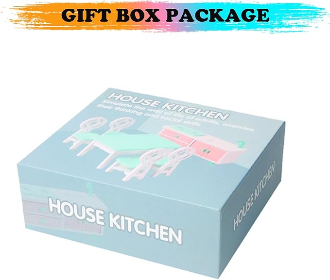 - DOLL HOUSE KITCHEN - Our wooden dollhouse kitchen sets contains 6pcs adorable mini dining room furniture toy with warm & cute color. It will be perfect ornament for dolls house