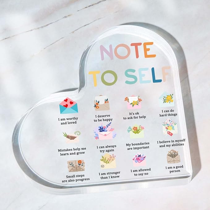 Mental Health Awareness Decor, Note to Self Psychotherapy Affirmations Heart Acrylic Sign, School Counselor Sign, Therapy Anxiety, Psychology Therapy Gift for School Home Tabletop Therapy Office Decor