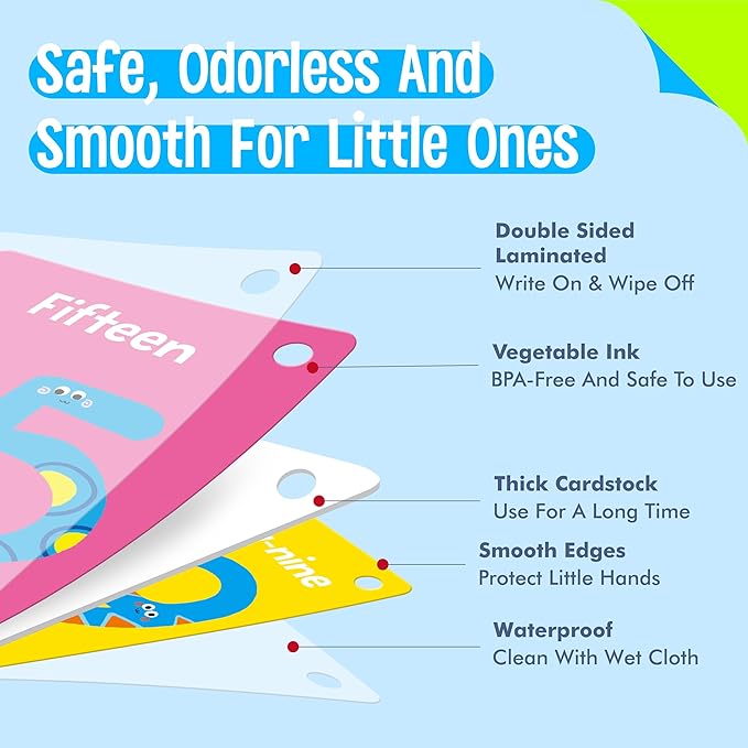 - Engaging and Educational Tool: Our 0-50 Number Flashcards are specifically designed to captivate young minds and bring them into an interesting number world. It introduces kids new concepts and ideas from an early age, helping them develop their cognitive abilities, start learning new things, promote parent-child interaction and improve memory and hand-eye coordination.