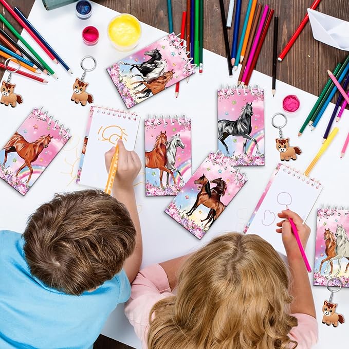 - Reliable Material: The horse keychain and bracelet are mainly made of silicone material, The horse theme goody bags, horse stickers, and horse mini notepad are made of heavy recyclable paper card.