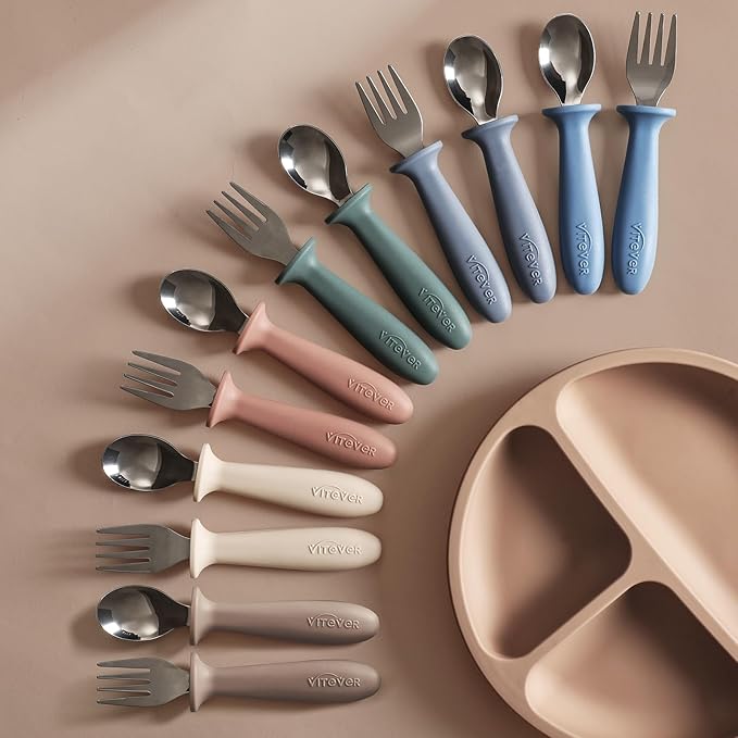 • ENCOURAGE INDEPENDENT EATING: Available in 3 soft colors of 6 pieces, each color includes a spoon & fork set to help your little ones learn self-eating. With three fun colors to choose from, your child will love digging into their favorite foods. Perfect choice for parents who want a safe and practical solution for their little one's mealtime needs.