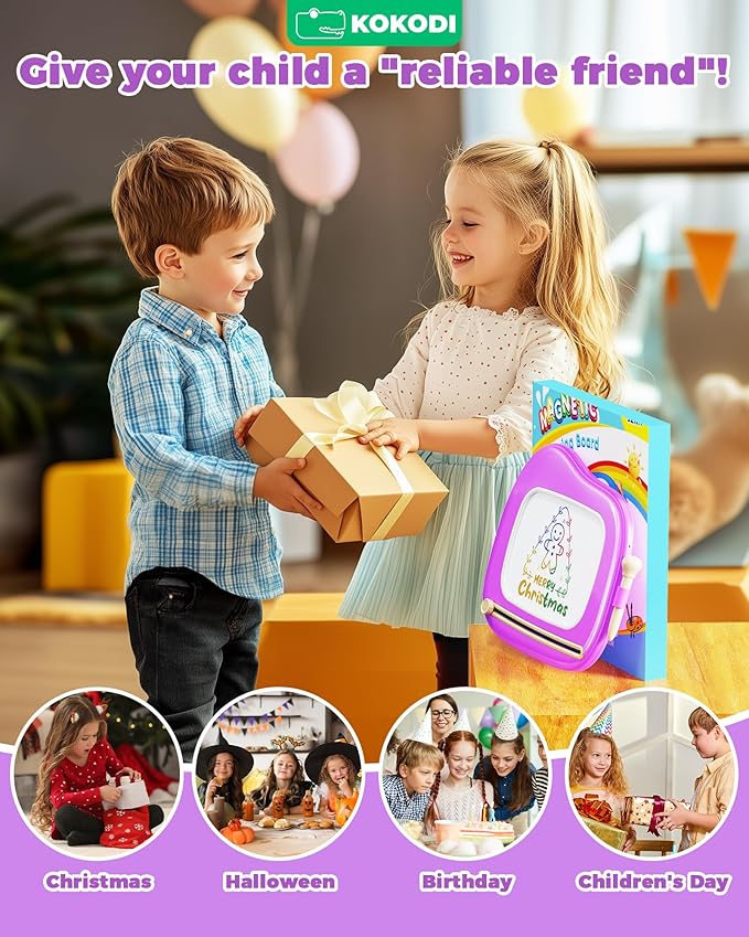 - 【Mom's Helper】KOKODI colorful magnetic doodle for toddlers is easy to use without limiting its fun. It's easy to draw on and easy to remove. It will keep kids busy without any help! Awesome toddler toys for ASD Autism kids. This vivid drawing board is a good helper to accompany kids' growth while stimulating creativity & imagination, cultivating patience and improving hand coordination.