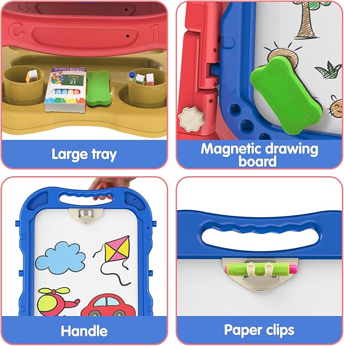 Amagoing Easel for Kids, Adjustable Standing Art Easel for Toddler, Double Drawing Board with Painting Accessories, Birthday Christmas Gift for Little Boys and Girls, Middle Size Blue+Red