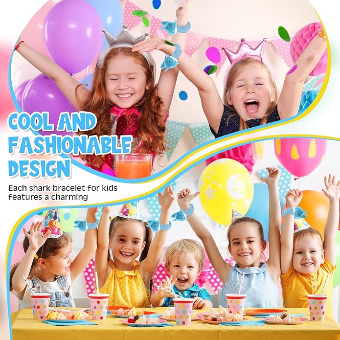 - Interactive Fun: kids can enjoy hours of interactive with these plush slap bracelets for kids, measuring about 2.4 x 9.8 inches/ 6 x 25 cm, designed with the look of sharks, fit for boys and girls, the plush bracelets can certainly spark a child's imagination far more than regular bracelets
