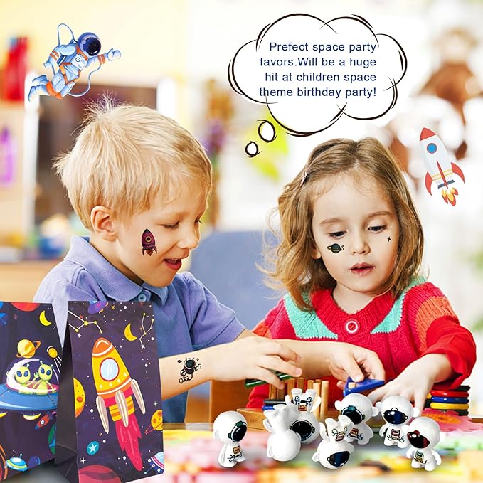 - Ideal Space Birthday Gifts for Kids-If you want to organize a space themed birthday party,our space party favors set is the best choice for your kids. Our outer space party favors set are also suitable for astronaut party favors,galaxy party favors,outer space party decorations,school classroom rewards,goodies bag filler,pinata filler and carnival prizes giveaways.