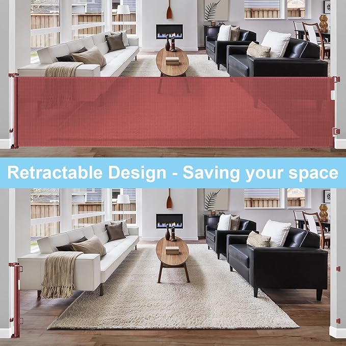 - Versatile Retractable Gate: extra wide retractable baby gates can be used as room dividers to create a flexible area for you or your children and pets, and can also be used as an alternative to a dog crate.
