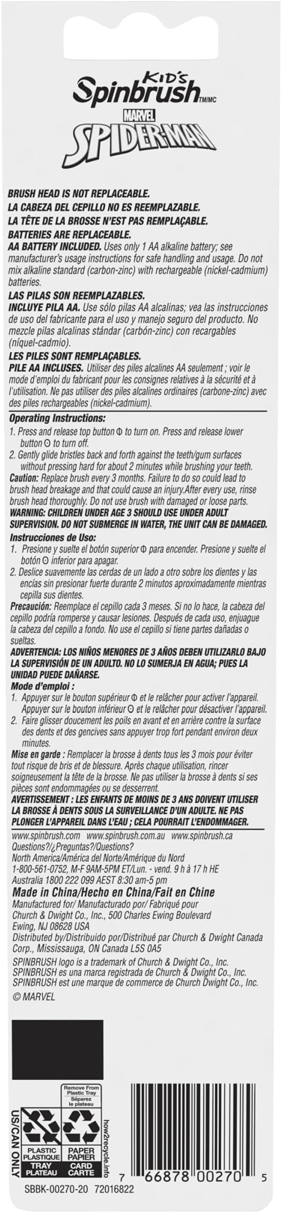 - One Arm & Hammer Kid’s Spinbrush Spiderman Powered Toothbrush