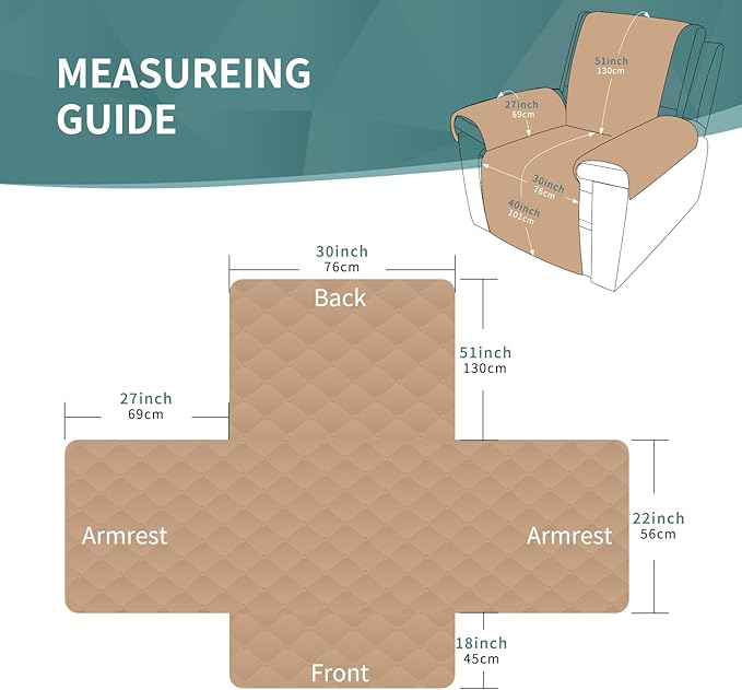 - Easy to Install: Our recliner cover backing have round colloid design, easy to put on,just drape it on, tuck any extra fabric into the recliner, makes it stay in place, suitable for every style of furniture (leather or cloth recliner).