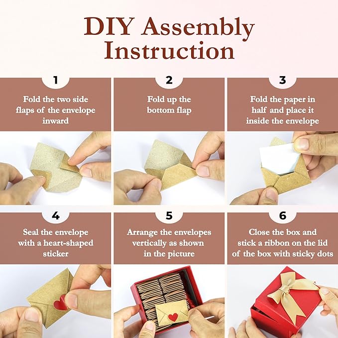 - DIY Love Gifts for Him Her: includes 60 tiny envelopes, 60 love note papers for matching couples stuff (45 pre-written romantic notes and 15 blank notes), 1 box with a bow tie for creating cool anniversary gifts for couples or vday gifts for him