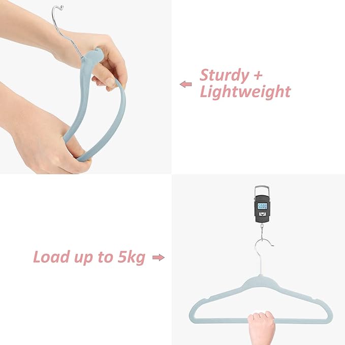 - 【Non-slip design】- The baby hangers are covered with soft, non-slip, odourless and non-shedding velvet, which is more suitable for toddler clothes. The curved shoulders of the children's hanger keep your child's clothes in good shape and protect them from wrinkling or deformation. The V-shaped grooves at the ends of the hanger prevent baby's clothes/children's dresses from slipping off.