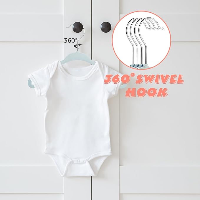- 【Swivel Hook】 - The hooks on this baby hanger are made of stainless steel super smooth chrome finish hooks that can be rotated 360 degrees. The rotatable hooks give you the convenience and flexibility to hang or access your child's clothes.