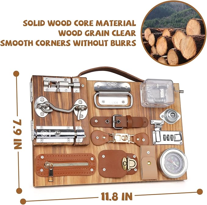 - Safety and Durability: Crafted from high-quality smooth wooden materials, our Montessori busy board prioritizes safety. With sturdy edges and secure elements, parents can trust that their toddlers can play safely and confidently.
