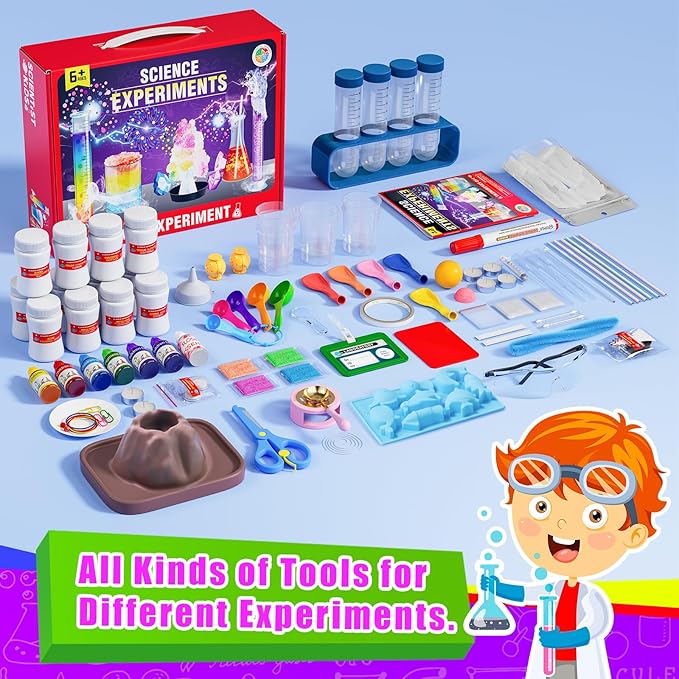 - 【ENDLESS FUN 110+ SCIENCE KIT】 This science experiments kit includes over 110 experiments - volcanic eruption, making water sprites, magic bouncy ball, crystal growing, rain of colored pearls, liquid stratification, etc. Help your kids foster an early love for science, and make your kids a little scientists.