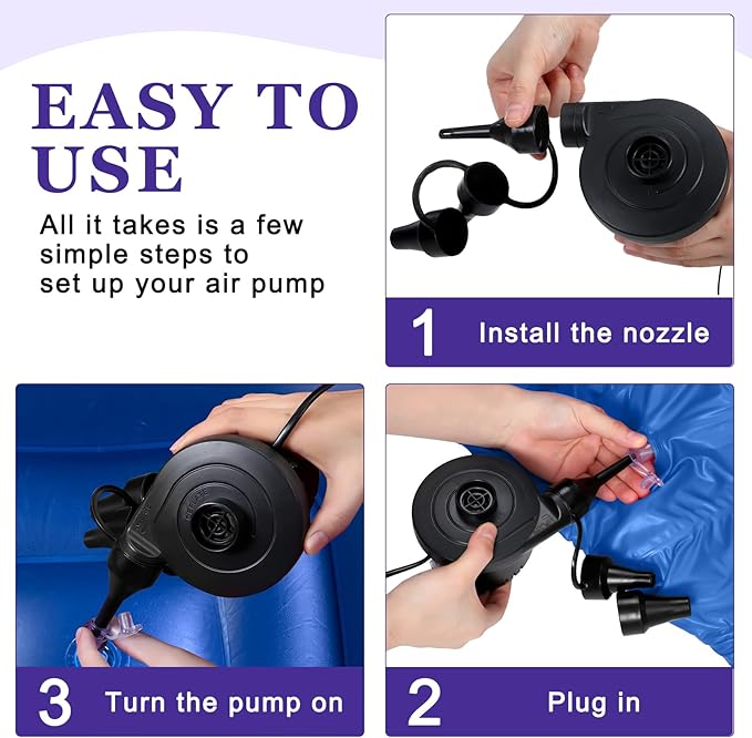 - Quick Electric Air Pump: the couch bean bag sofa package includes 1 quick electric air pump with 3 different nozzles, suitable for most inflatable products; Simply plug it in and start inflating or deflating; It operates fast ensuring you save much time and space; Enjoy its small size and lightweight features