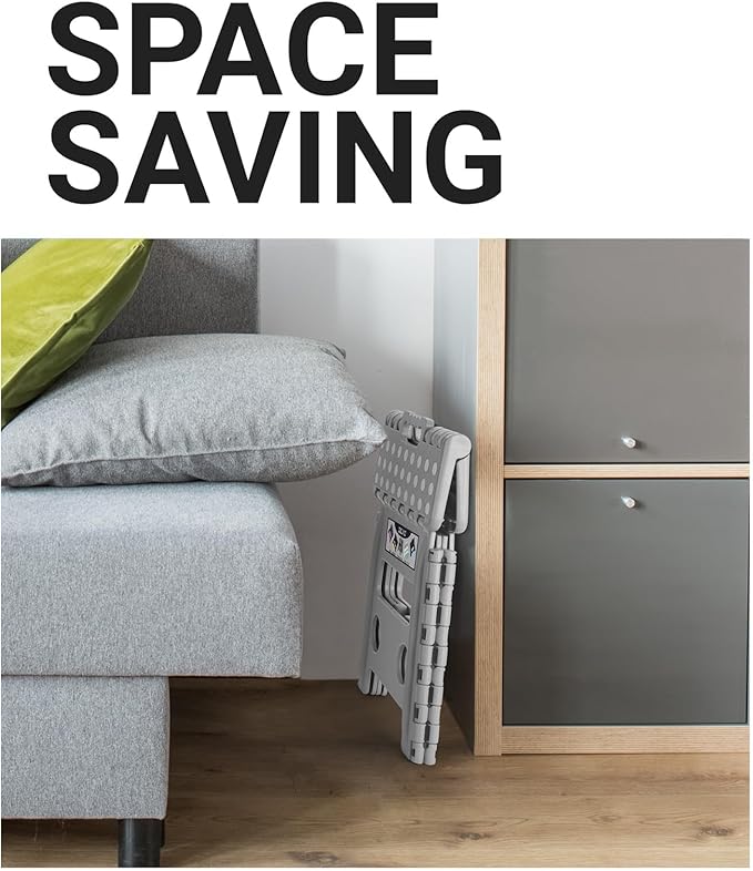 - Lightweight & Easy to Store : Opens with one flip of the hand and easily folds away. It is only about 1.2" wide when folded and is easy to store in any narrow space in your kitchen, bathroom, bedroom, utility, etc. You can even keep it folded in your RV to take along with you wherever you go. It is sure to come in handy when you're on an outdoor adventure, camping, fishing, and more