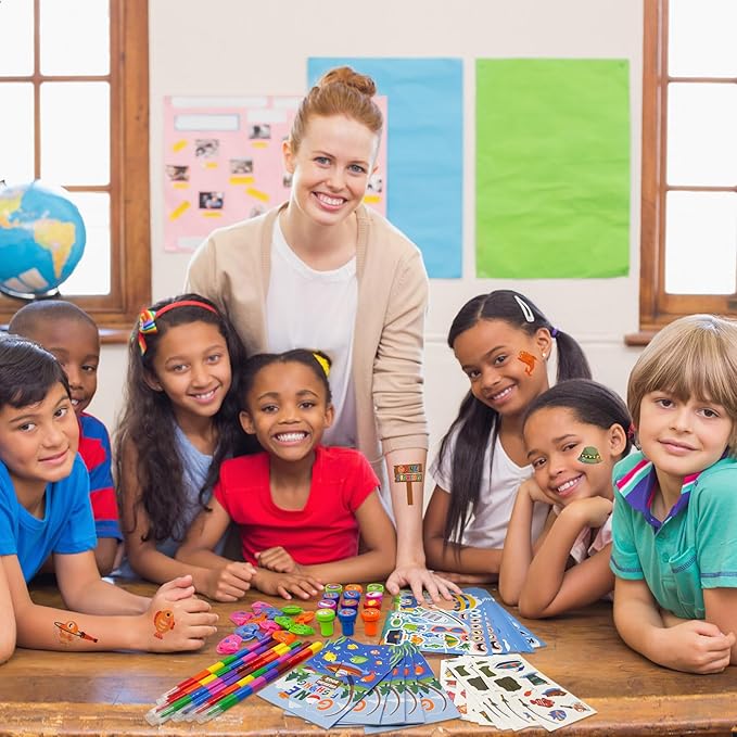 - Safe Material and Reliable Materials: the gone fishing goodie bags Fillers have been strictly tested, made of quality materials, and safe with smooth surfaces; Tattoos can be easily removed with makeup remover,and our stacking buildable 12 colors crayons are made of paraffin and plastic, stamps are made of plastic, other stickers are made of paper, nontoxic, safe material, safe for children to use