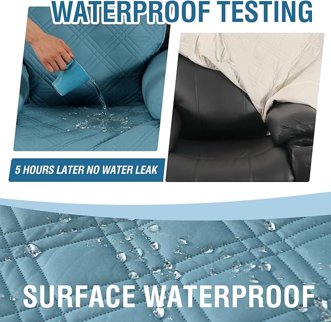 H.VERSAILTEX 100% Waterproof Recliner Chair Cover Non-Slip Sofa Slipcover with Elastic Straps for Pets, Dogs Furniture Protector for Electric Power Lift Recliner Washable with Pocket,Smoke Blue/Beige