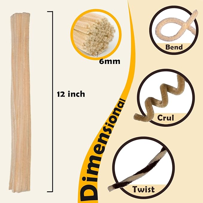 - Warm Brown Collection: 300 versatile pipe cleaners in 3 shades of brown inspired by the rich hues of the Maillard reaction, perfect for crafting lifelike animals and plants.