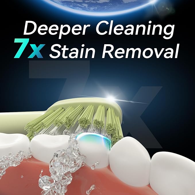 7AM2M Sonic Electric Toothbrush for Adults and Kids- High Power Rechargeable Toothbrushes with 8 Brush Heads,5 Adjustable Modes, Built-in 2-Minute Smart Timer,4 Hours Fast Charge for 30 DaysGreen