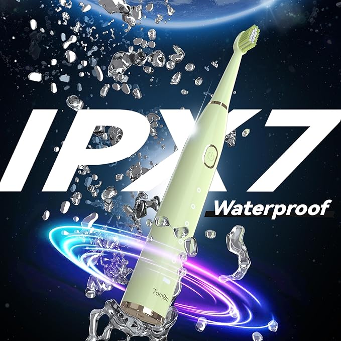 - IPX7 Waterproof and 2-Mins Timer Develop Healthy Tooth Brushing Habits: Built-in 2 minutes timer to ensure scientific brushing time, the sonic electric toothbrush pauses every 30 seconds to remind you to change the brushing area. And you can rinse it easily or use it in the shower with IPX7 waterproof.