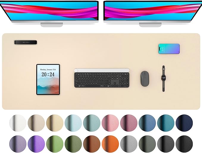 Aothia Leather Desk Pad Protector, Office Desk Mat, Large Mouse Pad, Non-Slip PU Leather Desk Blotter, Laptop Desk Pad, Waterproof Desk Writing Pad for Office and Home (48"x17", Beige)