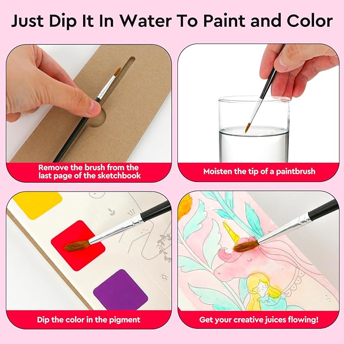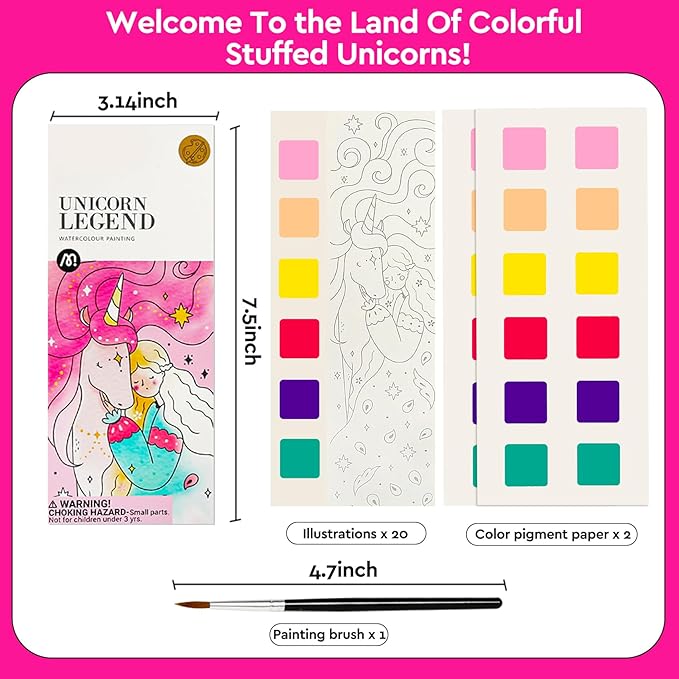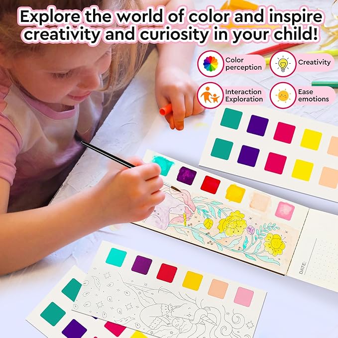 - Watercolor Book:This watercolor book for kids comes with everything needed to start painting right away,including brushes and paints.Just wet the brushes and moisten the paint palette,this watercolor painting bool kit perfect for kids ages 3-4,5-6,7-9,the thoughtful design ensures a clean and enjoyable painting experience.