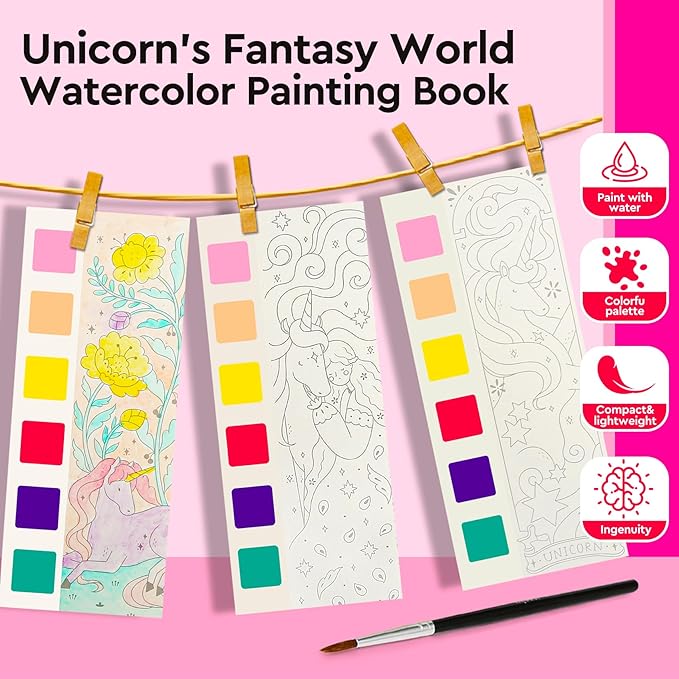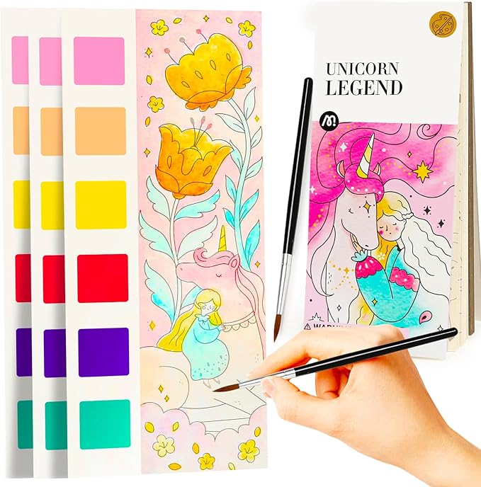 - Coloring Books for Kids Ages 4-8:This small, pocket-sized watercolor book is perfect for on-the-go creativity. It can easily be turned into a travel art set, allowing kids to paint wherever they are. Once a page is finished, it can be torn off along the dotted line and turned into a colorful bookmark or art craft. This feature makes it a great stress reliever and fun activity for toddlers, kids, or even adults.