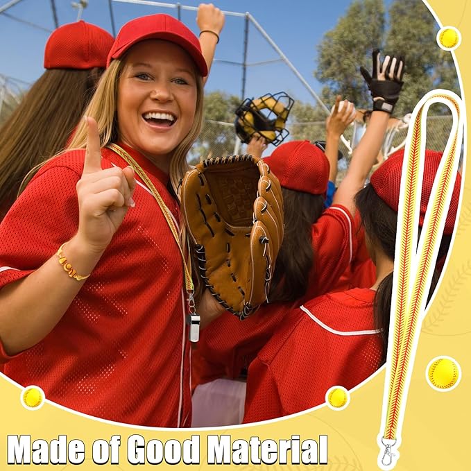 - Softball Party Favors: these softball girls gifts are designed to serve your party needs quite comprehensively; Includes 12 softball drawstring bags, 12 softball hair ties, 12 softball bracelets, 12 softball lanyards, and 12 softball keychains; Considering the extent of items contained within, these sets are ideal as softball team gifts and can effortlessly cater your softball themed party supplies and sharing desires