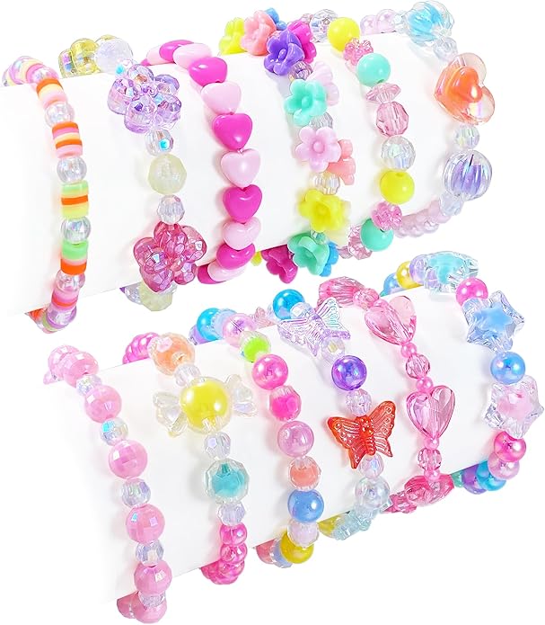 - Great Value Bundle: This girls' party favor pack comes with 12 stretchy bracelets, offering a delightful assortment of styles that will effortlessly complement your little one's everyday looks