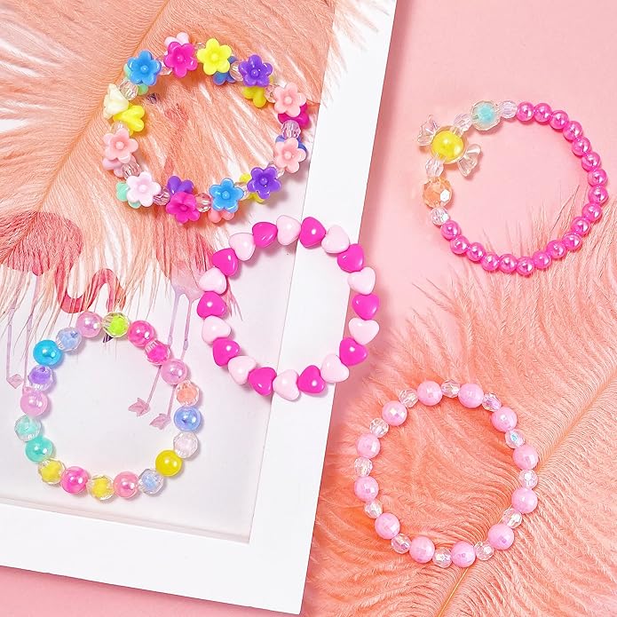 - Charming and Trendy: Our bracelet sets feature vibrant acrylic beads with an array of delightful designs, including multicolored patterns, flower, butterfly, adorable hearts, and stars. These playful accessories are for young fashion enthusiasts ages 3- 8 and make for an excellent birthday present or a sweet addition to any dress-up collection