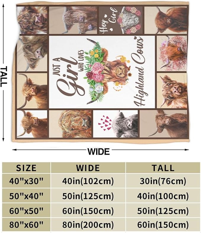 Just A Girl Who Loves Highland Cows Throw Blanket Cute Highland Cattle Fleece Plush Soft Cozy Cartoon Farm Cow Animal Gifts Blanket for Kids Girls Adults Couch Bed Chair Office Dorm Decor 40''X50''