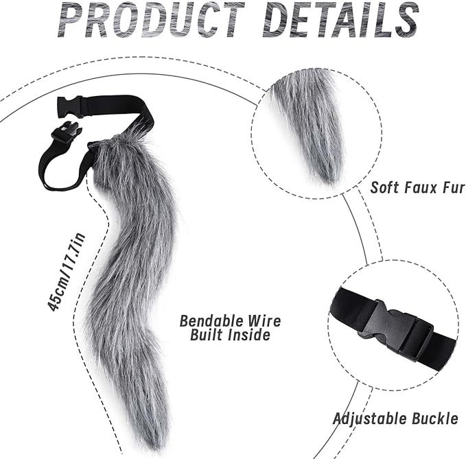 - 【Package Includes】You will receive a wolf ear headband, a spiked collar, a pair of rivets bracelets, and a wolf tail, a total of 4 pieces.