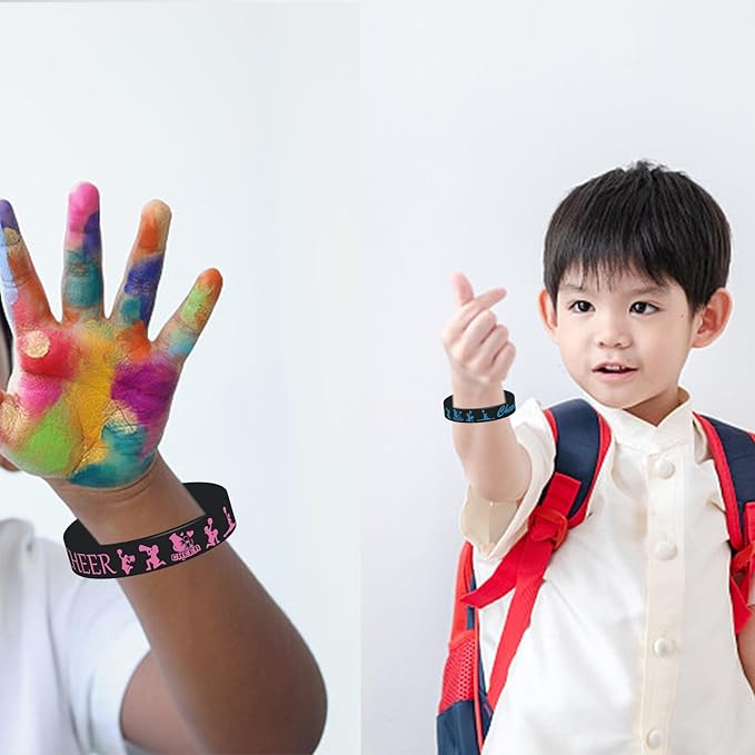 - Materials - Each Cheer Theme Rubber Bracelets is made of tough silicone rubber.Flexible but strong.
