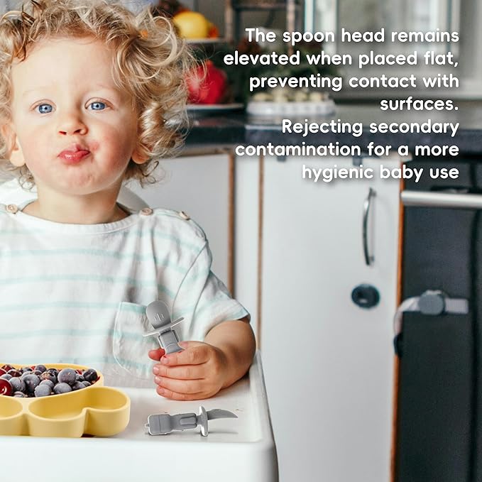• 【Intuitive and Easy to Use】: The handle shape is designed according to the baby's grasping habits, making it comfortable and easy to hold. It can meet the baby's different holding preferences. The thick and textured handle makes it easy for baby to get food into their mouth!