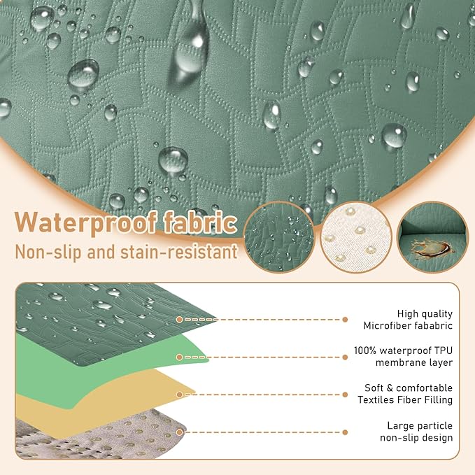- 100% Waterproof Protection: The top of the recliner covers is coated with a waterproof layer, complemented by a TPU waterproof layer in the middle, offering a dual defense system to ensure 100% waterproof and leak-proof functionality. This innovative waterproof feature serves as a shield to safeguard your recliner from any spills, liquid mishaps, and daily wear.