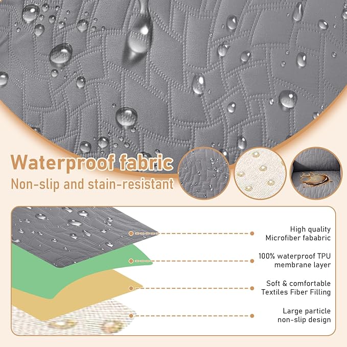 - 100% Waterproof Protection: The top of the recliner covers is coated with a waterproof layer, complemented by a TPU waterproof layer in the middle, offering a dual defense system to ensure 100% waterproof and leak-proof functionality. This innovative waterproof feature serves as a shield to safeguard your recliner from any spills, liquid mishaps, and daily wear.