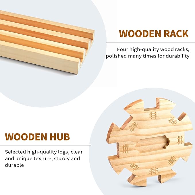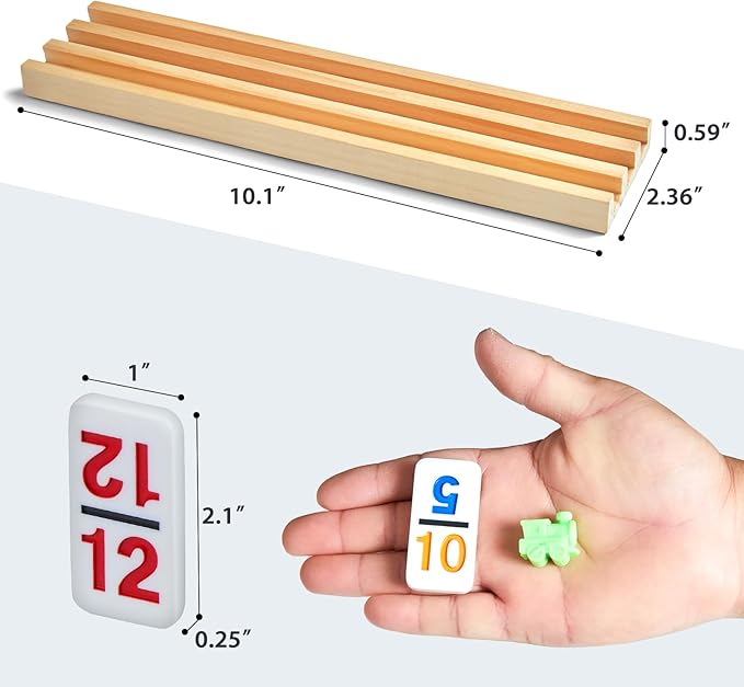 - WOODEN HOLDERS AND HUB: The racks and hub are crafted from high-quality solid wood, meticulously polished to ensure a smooth and durable surface. The three-layer, angled slot design enhances the visibility of the domino tiles, offering a comfortable gaming experience
