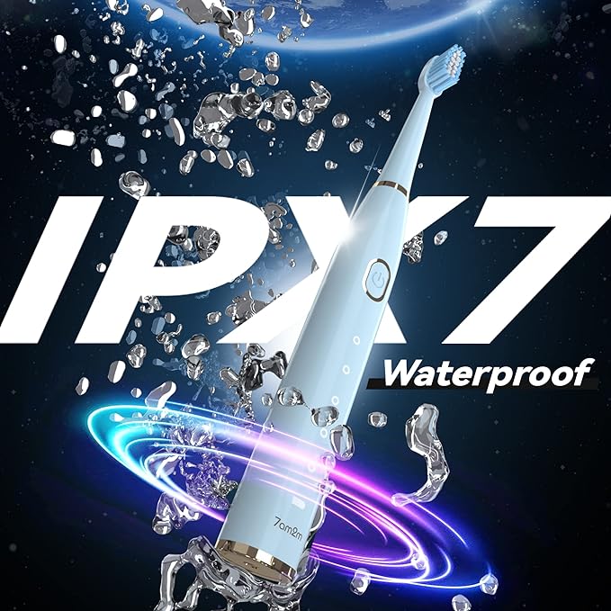7AM2M Sonic Electric Toothbrush for Adults and Kids- High Power Rechargeable Toothbrushes with 8 Brush Heads,5 Adjustable Modes, Built-in 2-Minute Smart Timer,4 Hours Fast Charge for 30Days (Blue)